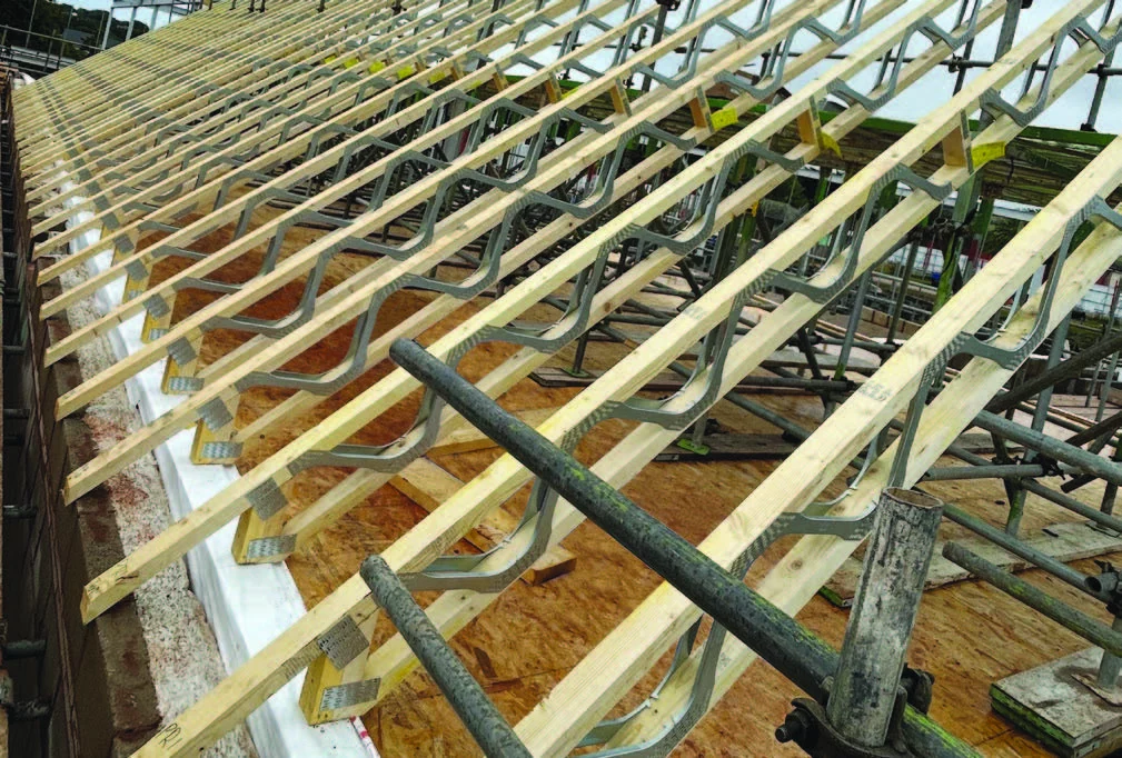 Crendon Timber Engineering, a long-standing member of the Trussed Rafter Association (TRA), was appointed to design, supply, and install the roof structure. The engineered timber package included Posi-Rafters, raised tie trusses, solid timber ceiling joists, and Glulam valley beams.