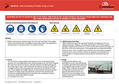 SSoW 14 – Safe Unloading of Panels Using a Crane