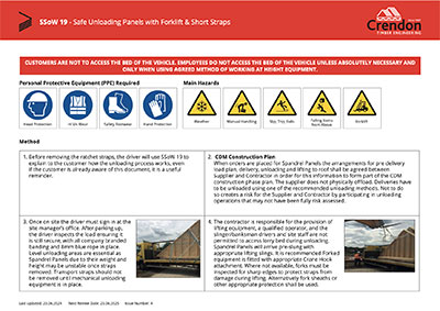 SSoW 19 – Safe Unloading of Panels with Forklift and Short Straps