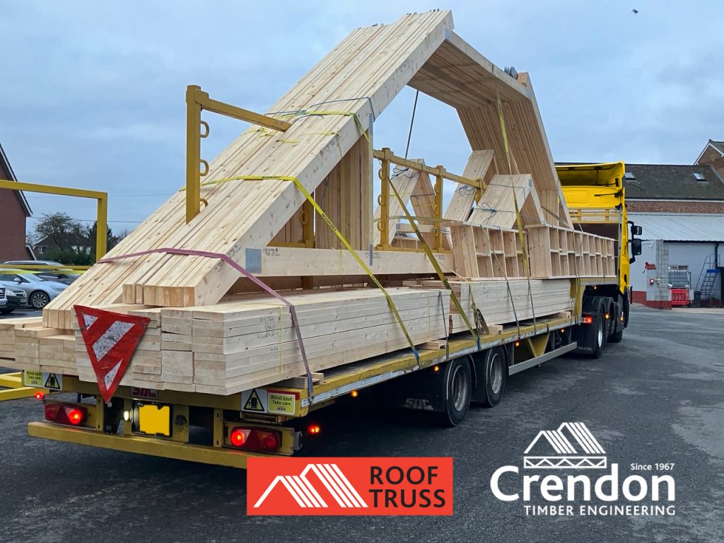 Full load of 14m span Top Hat Attic Trusses being delivered this week 100% On Time In Full, for a new house in Hornchurch