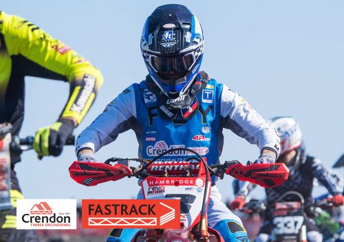 Gilbert was third on the opening lap and admitted he wasn’t 100% comfortable with bike set-up on the track which featured gravelly, hard sections, deep ruts in corners and huge jumps. So he wisely took a lap to get dialled into the circuit then pounced on Kullas and was quickly by into second spot. Mewse had seized the chance and edged away from the chasing Gilbert, as the Crendon Fastrack Hondas pulled away from the chasing pack. Mewse took the win from Gilbert, with third place 10 seconds adrift.