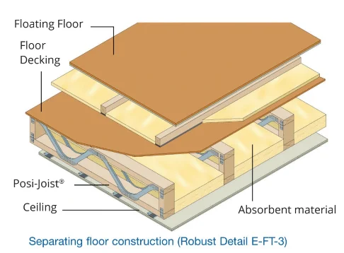 Posi-Joist can achieve over 40dB sound reduction in separating floor applications without the need for additional insulation when installed at 219mm deep and 600mm centres*. This makes it an efficient and regulation-compliant solution for both residential and commercial projects.